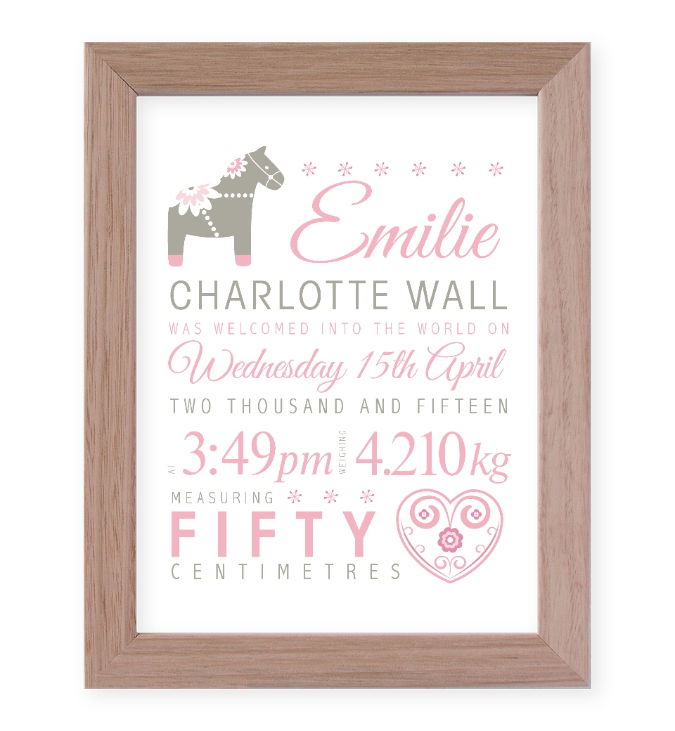 Dala Horse Birth Print - Baby Pink & Taupe