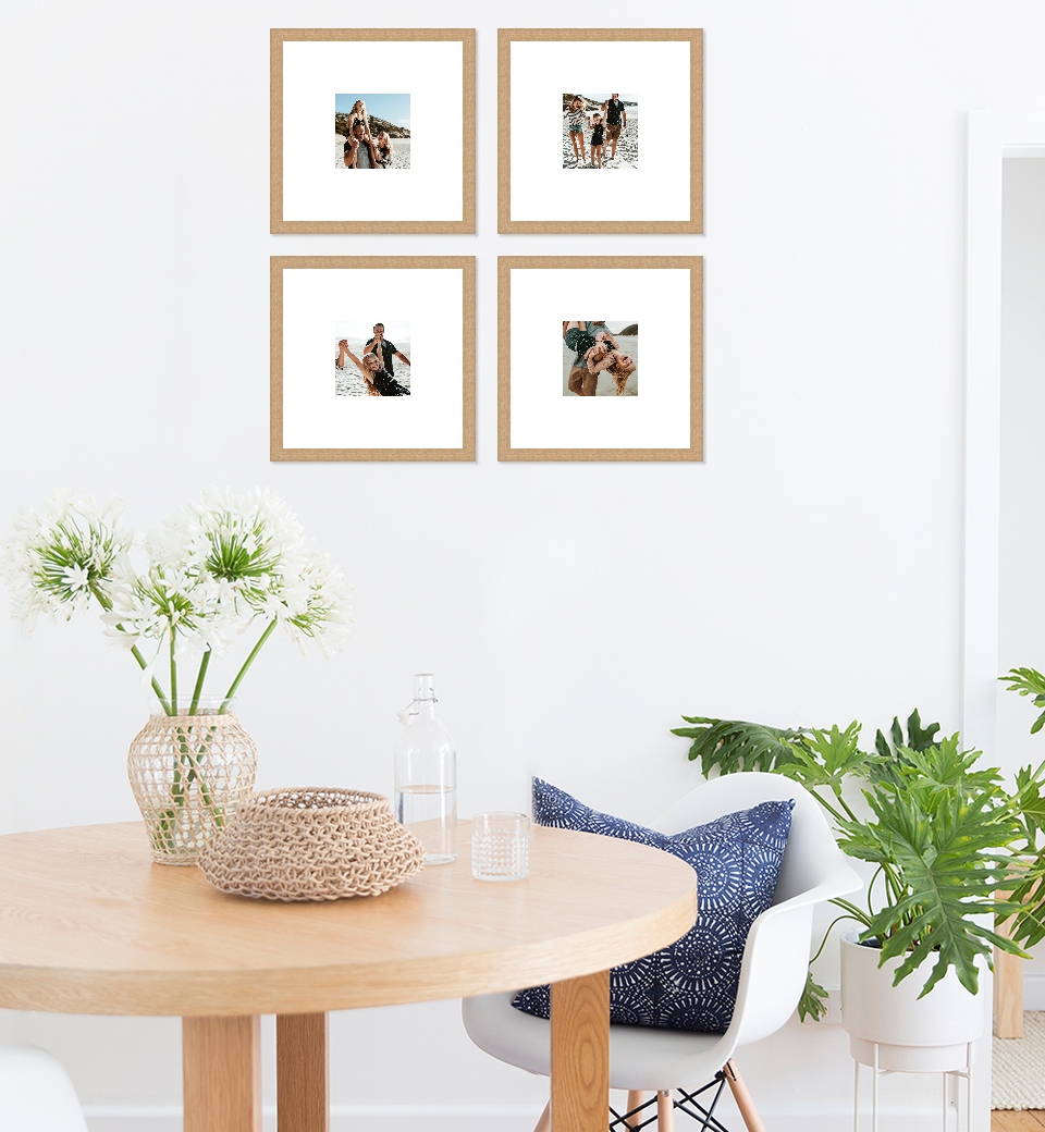 Choose from a wide range of gallery wall configurations in crisp white, matt black or beautiful oak frames. Upload your photographs and instantly see them in the context of a room.