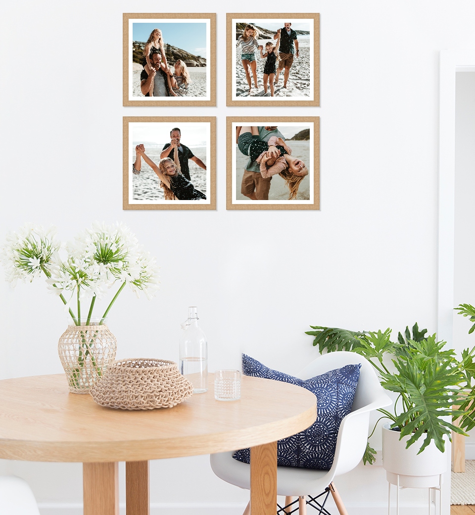Choose from a wide range of gallery wall configurations in crisp white, matt black or beautiful oak frames. Upload your photographs and instantly see them in the context of a room.