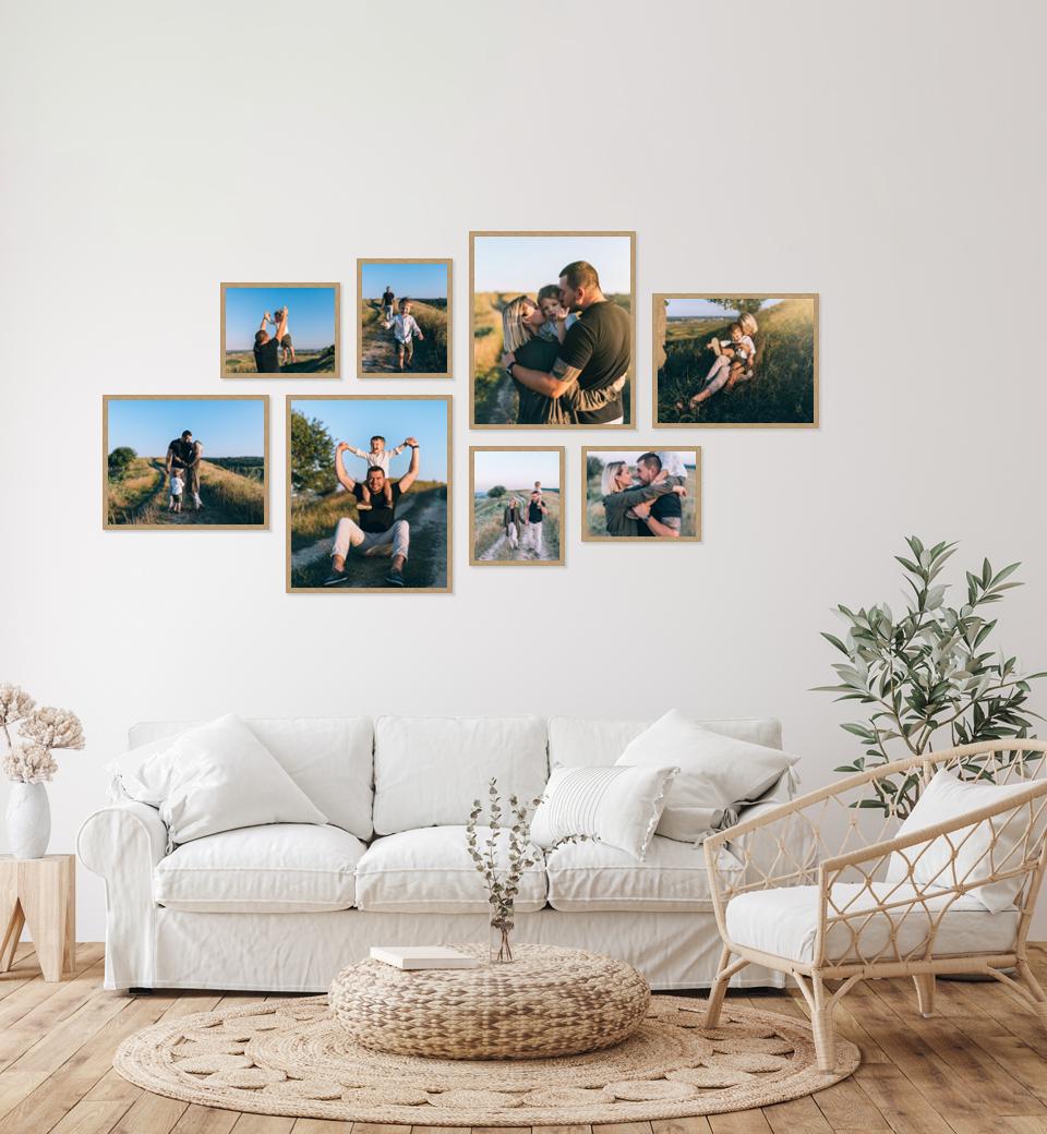 Choose from a wide range of gallery wall configurations in crisp white, matt black or beautiful oak frames. Upload your photographs and instantly see them in the context of a room.