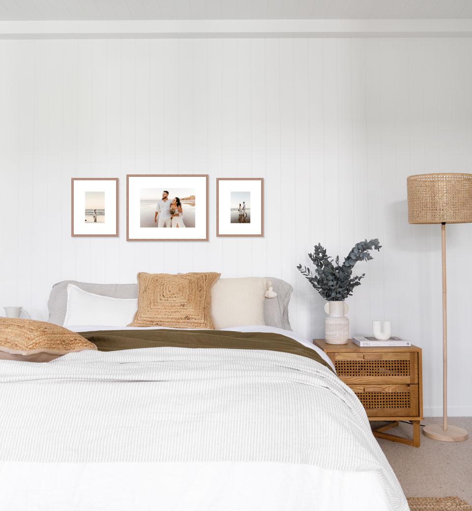 Choose from a wide range of gallery wall configurations in crisp white, matt black or beautiful oak frames. Upload your photographs and instantly see them in the context of a room.