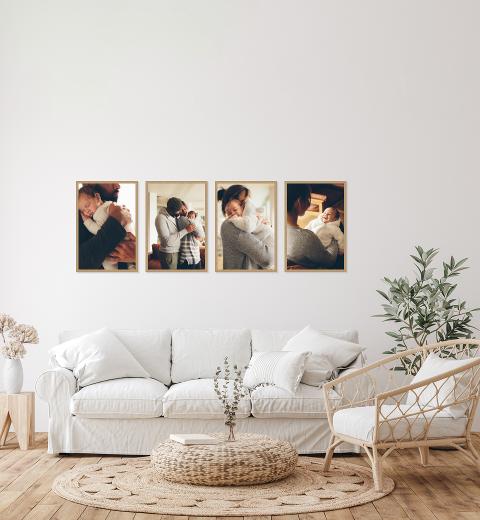 Choose from a wide range of gallery wall configurations in crisp white, matt black or beautiful oak frames. Upload your photographs and instantly see them in the context of a room.