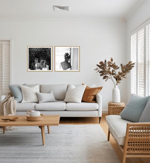 Choose from a wide range of gallery wall configurations in crisp white, matt black or beautiful oak frames. Upload your photographs and instantly see them in the context of a room.