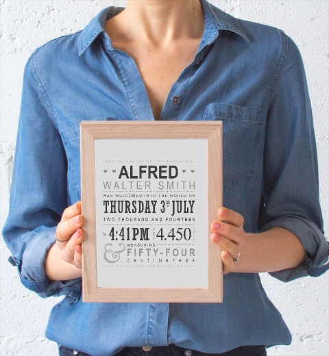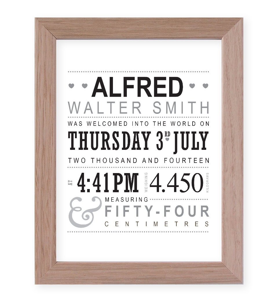 Typographic Birth Print - Monochrome
