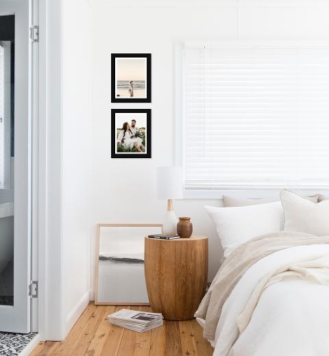 Each frame is made from solid, sustainably sourced timber and assembled by hand in our Melbourne studio. They're sealed with framers tape, finished with float glass for protection and clarity, and fitted with felt bumpers to protect your walls. Every piece is made to showcase your memories beautifully, and built to stand the test of time.