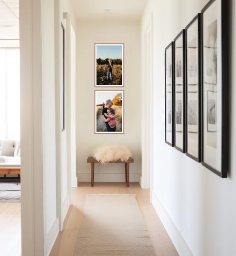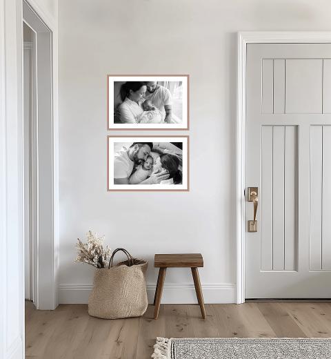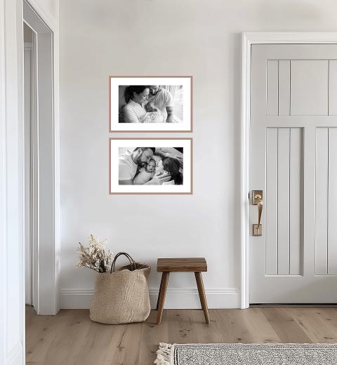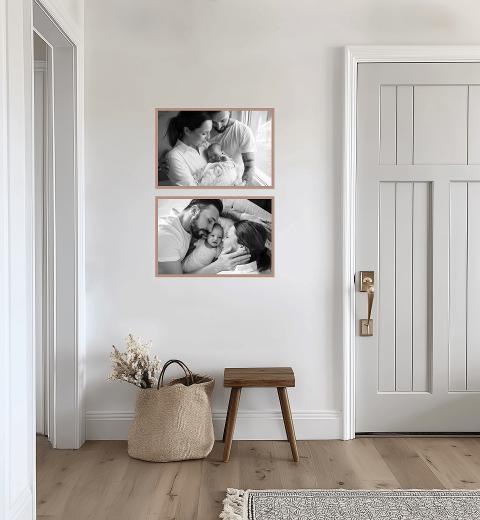 The Vertical Duo gallery wall is a minimalist favourite—featuring two vertically aligned photo frames, perfect for small spaces. Ideal for hallways, beside doors, or framing a narrow wall, it’s a simple yet striking way to style meaningful moments. Each set is handcrafted in Melbourne and includes a hanging guide, making it easy to create an elegant photo display.