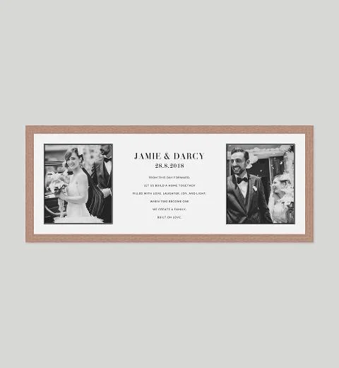 Tell a bigger story with our framed photo collage prints, designed to hold multiple memories in one beautifully balanced layout. Perfect for first birthdays, anniversaries, or thoughtful gifts for loved ones, each collage is giclée printed on fine art paper and custom-framed by hand in our Melbourne studio. Choose from a range of layouts and add optional personalised text to make it truly yours.