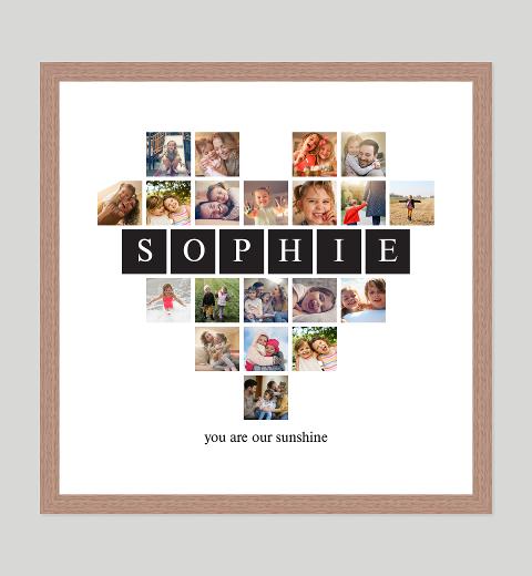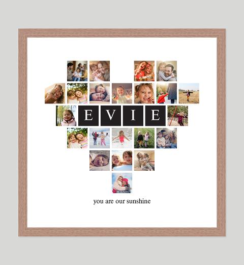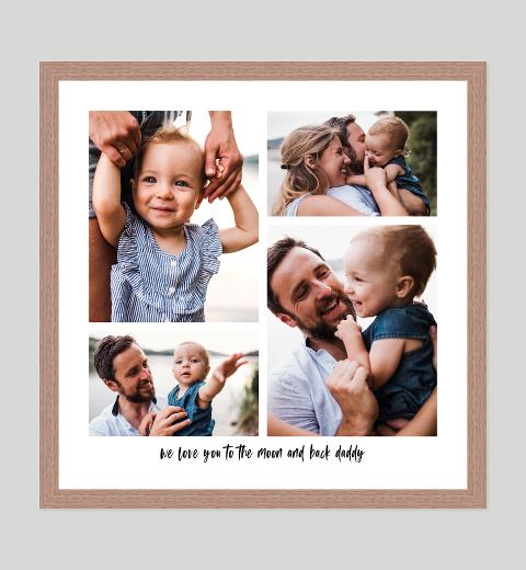 Tell a bigger story with our framed photo collage prints, designed to hold multiple memories in one beautifully balanced layout. Perfect for first birthdays, anniversaries, or thoughtful gifts for loved ones, each collage is giclée printed on fine art paper and custom-framed by hand in our Melbourne studio. Choose from a range of layouts and add optional personalised text to make it truly yours.
