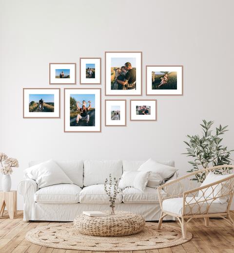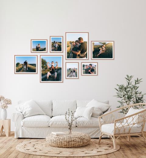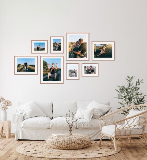 An exquisite collection of landscape and portrait prints in a more relaxed style of configuration, our Landscape Great Eight gallery wall is a beautiful design for your living room or hallway.