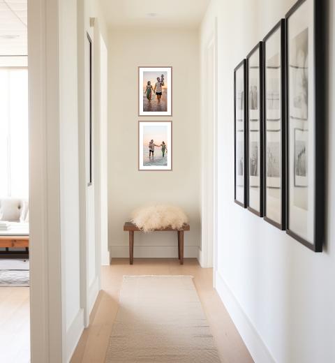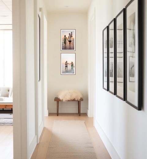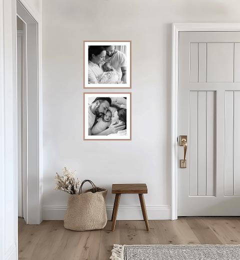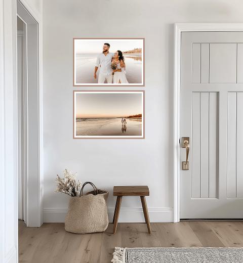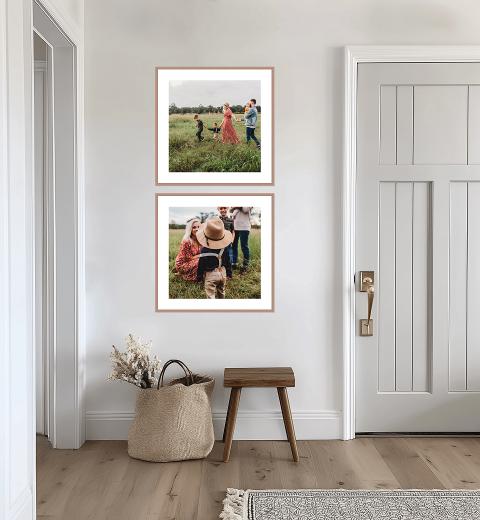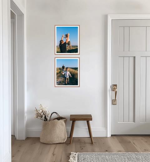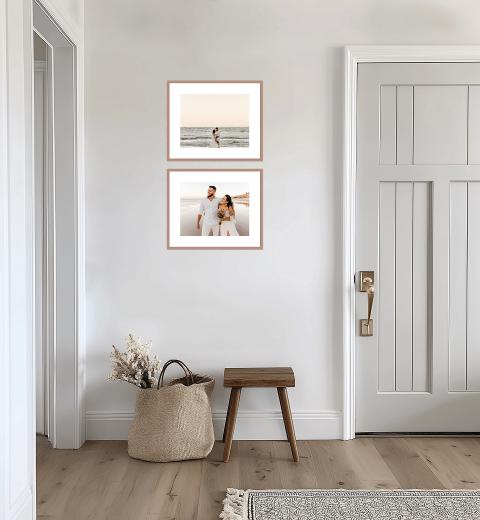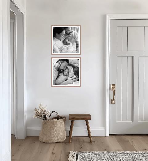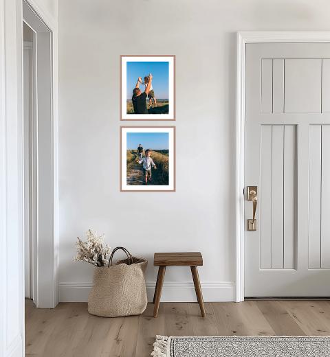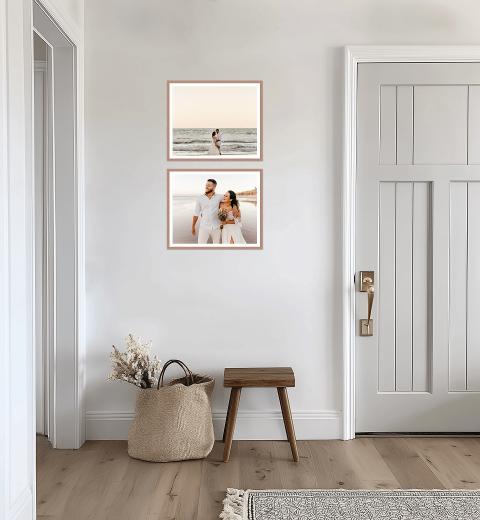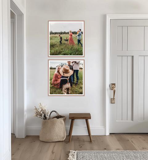 The Vertical Duo gallery wall is a minimalist favourite—featuring two vertically aligned photo frames, perfect for small spaces. Ideal for hallways, beside doors, or framing a narrow wall, it’s a simple yet striking way to style meaningful moments. Each set is handcrafted in Melbourne and includes a hanging guide, making it easy to create an elegant photo display.